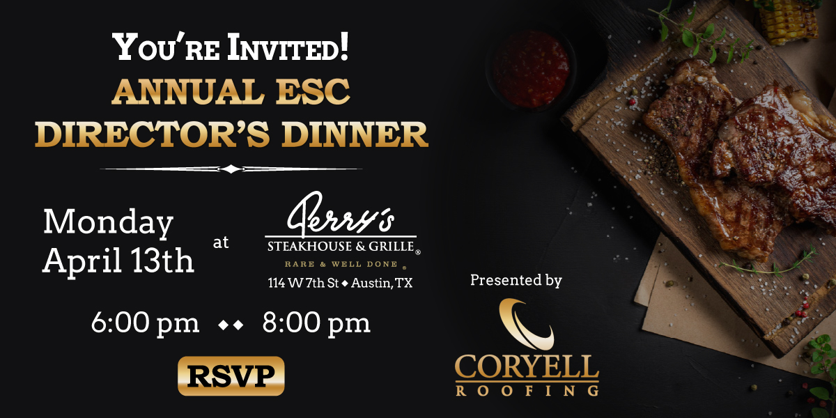 Let us know if you will be attending the Coryell Roofing Texas ESC Executive Directors Dinner…